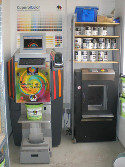 Mit unserer computergesteuertenFarbmischanlage mischen wir jedengewünschten Farbton.Mit den Produkten von Caparolkönnen wir alle Farben im Außen-und Innenbereich schnell undproblemlos mischen.